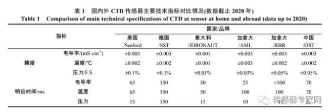 盡管 CTD 傳感器國內(nèi)市場有旺盛的需求,在過去的 20 年里,國家通過各類專項(xiàng)計(jì)劃已取得了多種科研成果, 但其成果未能實(shí)現(xiàn)產(chǎn)業(yè)化,現(xiàn)有國產(chǎn) CTD 產(chǎn)品性能落后于國際水平,絕大部分市場被國外儀器占領(lǐng)。
