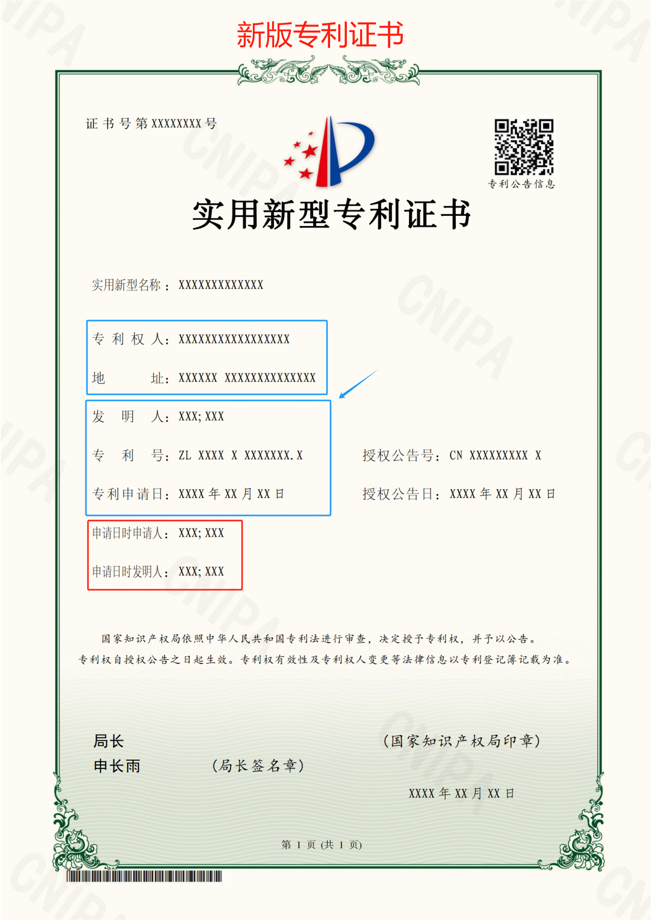 新版專利證書的變化主要在兩點: