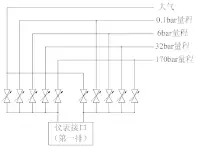 智能壓力儀表自動標定裝置系統的管路設計是通過控制閥門切換來實現信號的輸入。整個系統可標定智能儀表的數量可根據具體情況進行設計和設置。