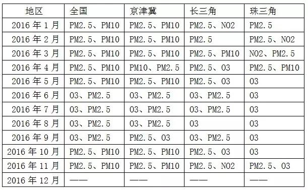 在大氣污染防治工作中,部分區(qū)域?qū)⒅析埠头丽簿劢褂赑M2.5的監(jiān)測和管控。事實上,由于我國地域廣闊、四季明顯、各地工業(yè)產(chǎn)業(yè)差異大,不同地區(qū)不同季節(jié)的污染存在很大差別,僅監(jiān)測PM2.5是遠(yuǎn)遠(yuǎn)不能滿足需要的。以2016年為例,全國、京津冀、長三角、珠三角首要污染物分布見圖1。