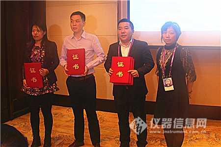 接著,中國儀器儀表行業(yè)協(xié)會(huì)高級顧問閆增序、北京科學(xué)儀器裝備協(xié)作服務(wù)中心主任孫月琴、北京材料分析測試服務(wù)聯(lián)盟秘書長關(guān)璐分別為到場的獲獎(jiǎng)儀器企業(yè)代表頒獎(jiǎng)。
