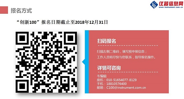 后續(xù),“創(chuàng)新 100”還將繼續(xù)走訪報(bào)道北京、天津、深圳、福建、江浙滬等地的儀器廠商,通過(guò)篩選“科學(xué)儀器行業(yè)最具成長(zhǎng)潛力企業(yè)”、撰寫中小儀器企業(yè)創(chuàng)新能力調(diào)研報(bào)告等形式,依托儀器信息網(wǎng)媒體資源,形成“創(chuàng)新 100”企業(yè)傳播的倍增效應(yīng)?!皠?chuàng)新 100”申報(bào)截止至 2018 年 12 月 31 日,歡迎符合如下條件的儀器企業(yè)積極申報(bào)。