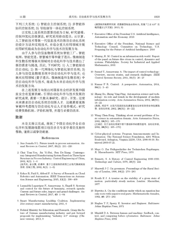 本論文得以完成, 得到了中國自動化學會自動化學科發展路線圖項目組的多名專家學者的支持和幫助, 謹致以誠摯的謝意.