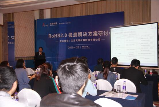 2019年4月26日,天瑞儀器RoHS2.0解決方案研討會巡演首站在浙江寧波香格里拉大酒店舉行。來自電子電器設備制造行業多名企業代表參與此次會議,聽取了天瑞儀器針對RoHS2.0法規的最新進展和應對方案,現場氣氛十分熱烈。