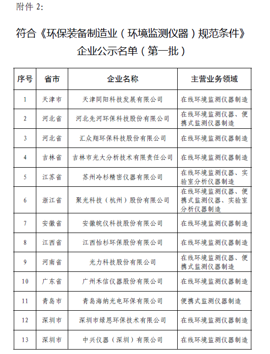 工信部公示符合《環保裝備制造業(環境監測儀器)規范