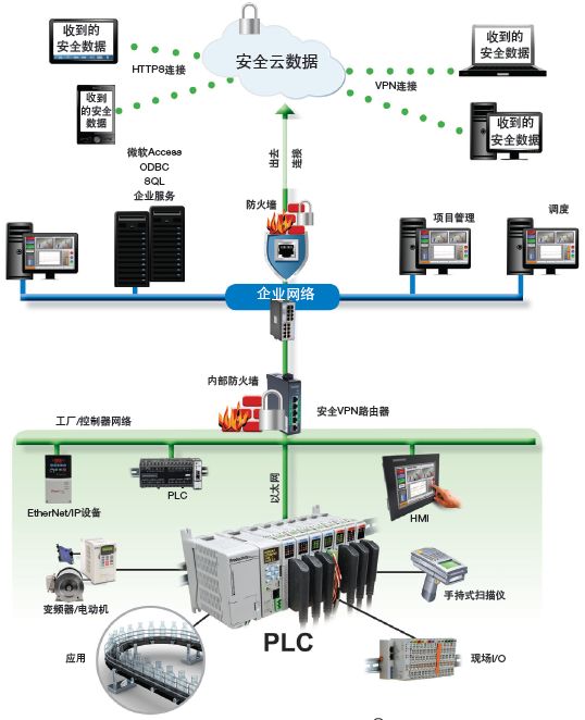 在與遠程訪問相關的硬件配置中,在遠程功能必須啟用的情況下,現代控制器應具有內置安全性,并選擇數據庫中的對應標簽以啟用對其的遠程訪問。此外,對于可以從互聯網訪問的任何設備都是如此,強烈建議使用防火墻保障安全。盡管控制器的遠程訪問功能可以并且應該配置密碼保護,但由于互聯網安全風險,安全和加密的虛擬專用網絡 (VPN) 連接是一種更好的選擇(圖2)。