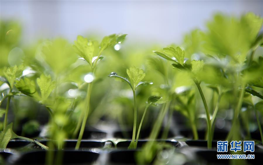 這是222日在寧夏銀川市賀蘭縣新平現代農業示范園區蔬菜育苗大棚里拍攝的芹菜幼苗。