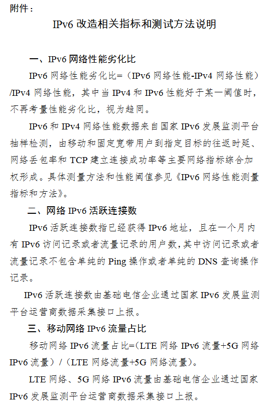 附件:IPv6改造相關(guān)指標(biāo)和測試方法說明