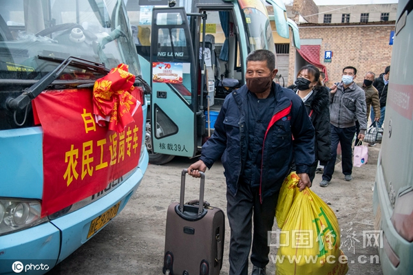 2月27日,陜西省渭南市白水縣人社局為外出務(wù)工人員提供了返崗復(fù)工包車護送服務(wù),解決了全縣外出務(wù)工人員出行難的問題。(圖片來源:東方IC)