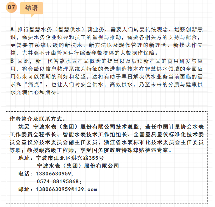 讓我們期盼并祝愿寧水集團新一代智能水表(智能水表3.0)能早日研制成功,早日進入工程化應(yīng)用,早日為供水企業(yè)提供高性價比的海量數(shù)據(jù)。