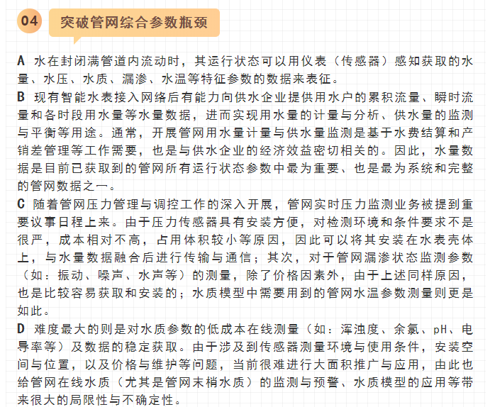 寧水集團2019年初在主板A股上市后,進一步確立了服務(wù)于智慧供水新業(yè)務(wù)的戰(zhàn)略方針與目標,在持續(xù)做好水表產(chǎn)品水計量性能提升、以NB-IoT及5G技術(shù)等為代表的無線數(shù)據(jù)遠傳業(yè)務(wù)拓展以及DMA分區(qū)計量漏損監(jiān)測、水務(wù)信息化應(yīng)用等工作基礎(chǔ)上,正在努力向供水管網(wǎng)數(shù)據(jù)綜合提供商和智慧供水核心業(yè)務(wù)服務(wù)商轉(zhuǎn)型與升級,其近中期目標是向供水企業(yè)提供在線一體化的高性價比管網(wǎng)綜合大數(shù)據(jù)感知裝置(包括:水量、水壓、水質(zhì)、漏滲、水溫等參數(shù)),為智慧供水新業(yè)務(wù)及水務(wù)信息化云平臺提供海量數(shù)據(jù)支撐,使現(xiàn)有水力、水質(zhì)、漏損、能耗等水務(wù)管網(wǎng)模型運行準確度能夠顯著提升。