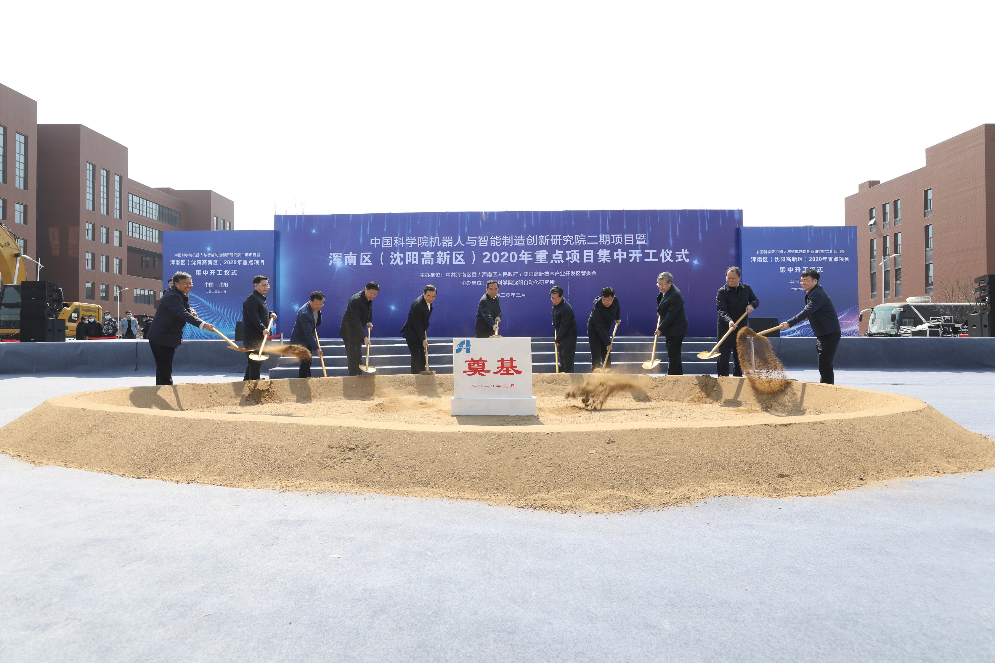 3月30日,渾南區(qū)、沈陽高新區(qū)2020年重點(diǎn)項(xiàng)目集中開工儀式在中國科學(xué)院沈陽自動化研究所創(chuàng)新路所區(qū)新開項(xiàng)目現(xiàn)場舉行。遼寧省委常委、沈陽市委書記張雷,市委副書記、市長姜有為,市委常委、副市長李松林,市委常委、市委秘書長李強(qiáng),市政府副市長王忠昆,市政府秘書長曹鵬,渾南區(qū)委書記、沈陽高新區(qū)黨工委書記單義,渾南區(qū)政府區(qū)長、沈陽高新區(qū)管委會主任閆占峰出席活動。沈陽自動化所所長于海斌、黨委書記兼副所長桑子剛出席并與主席臺領(lǐng)導(dǎo)共同為項(xiàng)目奠基。