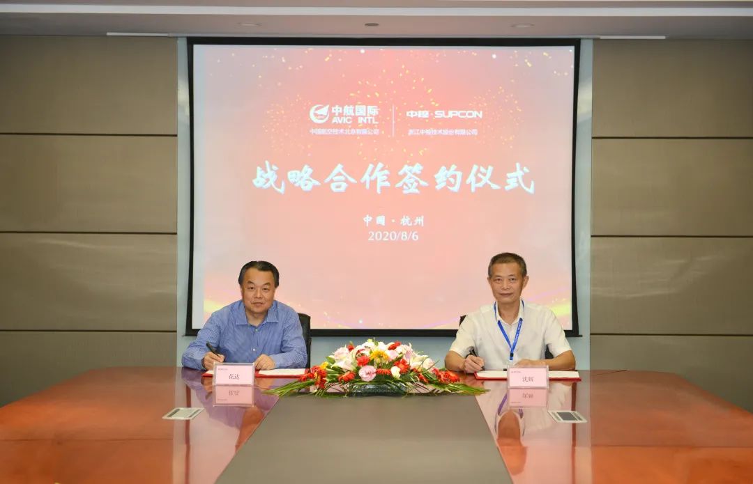 中航國際北京公司董事長龔家炎、總經理花達一行6人,浙江中控技術股份有限公司高級副總裁沈輝及海外銷售中心相關領導,出席戰略合作協議簽約儀式。