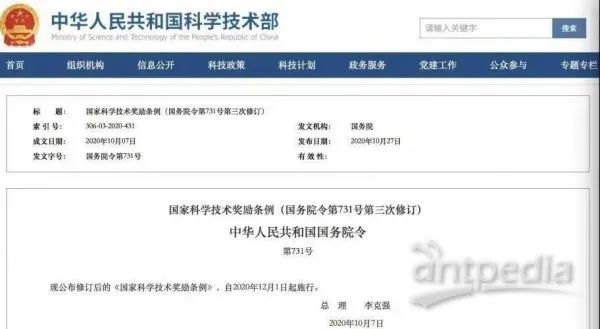 國務(wù)院總理李克強日前簽署國務(wù)院令,公布修訂后的《國家科學(xué)技術(shù)獎勵條例》(以下簡稱《條例》),自2020年12月1日起施行。
