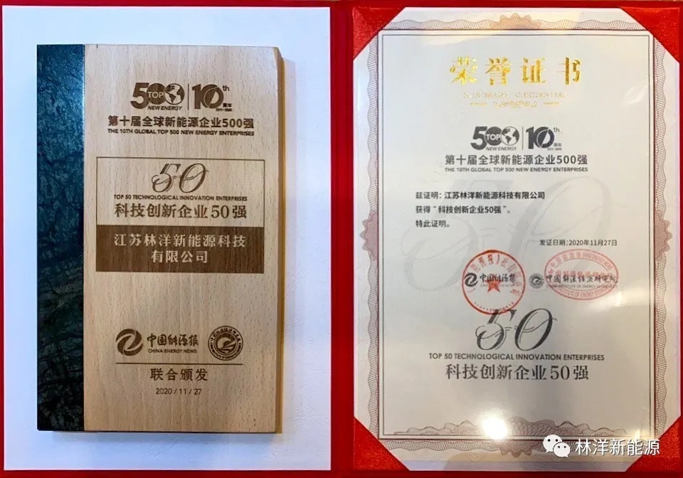 近日,由山西省能源局、《中國能源報》社聯合主辦的“2020能源轉型論壇暨第十屆全球新能源企業500強峰會”在山西太原舉行,江蘇林洋新能源科技有限公司(下稱“林洋新能源”)成功入選峰會“2020全球新能源企業500強”和“新能源科技創新企業50強”兩項榜單。
