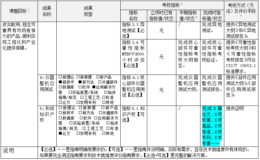 根據(jù)項(xiàng)目申報(bào)指南的要求,整機(jī)類項(xiàng)目中期檢查前技術(shù)就緒度應(yīng)不低于6級(jí),結(jié)題綜合績(jī)效評(píng)價(jià)前技術(shù)就緒度應(yīng)不低于8級(jí)。核心部件類項(xiàng)目中期檢查前技術(shù)就緒度應(yīng)不低于6級(jí),結(jié)題綜合績(jī)效評(píng)價(jià)前技術(shù)就緒度應(yīng)不低于9級(jí)。項(xiàng)目工程化單位需按照技術(shù)就緒度評(píng)估指南開展自評(píng)估工作,并出具一份技術(shù)就緒度自評(píng)估報(bào)告,以及提供支撐報(bào)告的相關(guān)佐證材料。