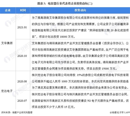 電容器行業代表性企業最新投資動向