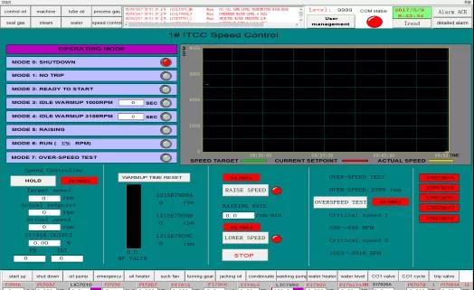 汽輪機(jī)作為原動(dòng)機(jī),汽輪機(jī)啟動(dòng)階段的轉(zhuǎn)速控制,根據(jù)汽輪機(jī)主機(jī)廠提供的升速曲線,進(jìn)行升速控制。在機(jī)組暖機(jī)升速、過臨界轉(zhuǎn)速、進(jìn)入工作轉(zhuǎn)速和降速停機(jī)過程中,要投入壓縮機(jī)調(diào)速控制。在機(jī)組控制系統(tǒng)中預(yù)先存儲(chǔ)壓縮機(jī)的升速曲線,根據(jù)預(yù)設(shè)的轉(zhuǎn)速,將轉(zhuǎn)速目標(biāo)值轉(zhuǎn)換為轉(zhuǎn)速PID的給定值,保證機(jī)組穩(wěn)定工作在額定轉(zhuǎn)速。
