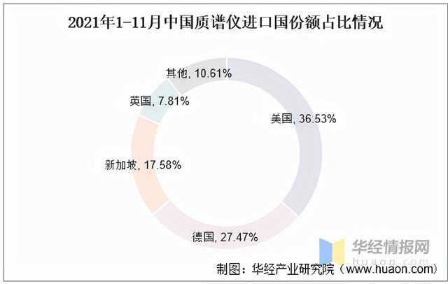從進(jìn)口國(guó)情況來(lái)看,我國(guó)主要在美國(guó)、德國(guó)、新加坡進(jìn)口質(zhì)譜儀高端產(chǎn)品。據(jù)統(tǒng)計(jì),2021年1-11月,我國(guó)主要進(jìn)口國(guó)數(shù)量分布情況為:美國(guó)(3223臺(tái),占比36.53%)、德國(guó)(2424臺(tái),占比27.47%)、新加坡(1551臺(tái),占比17.58%)。