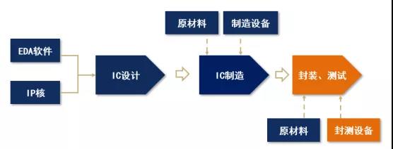 半導(dǎo)體產(chǎn)業(yè)鏈可大致分為設(shè)計、晶圓制造與封裝測試三大環(huán)節(jié),芯片設(shè)計環(huán)節(jié)產(chǎn)出各類芯片的設(shè)計版圖,晶圓制造環(huán)節(jié)根據(jù)設(shè)計版圖進行掩膜制作,形成模版,并在晶圓上進行加工,封裝測試環(huán)節(jié)對生產(chǎn)出來的合格晶圓裸晶進行切割、焊線、塑封,并對封裝完成的芯片進行性能測試。