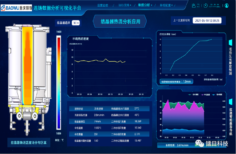 又如,寶武集團重慶鋼鐵煉鋼二區,采用了鐳目智能脫硫扒渣系統(規劃)+煉鋼生產智能管控系統+智能連鑄機+鐵水轉運和連鑄集控中心產品組合之后,其連鑄拉速可以穩定在3.5m/min以上,連澆爐數超過50爐,產能提升達40%。