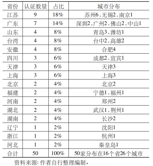 表2 中國50家獲評“燈塔工廠”的地域分布
