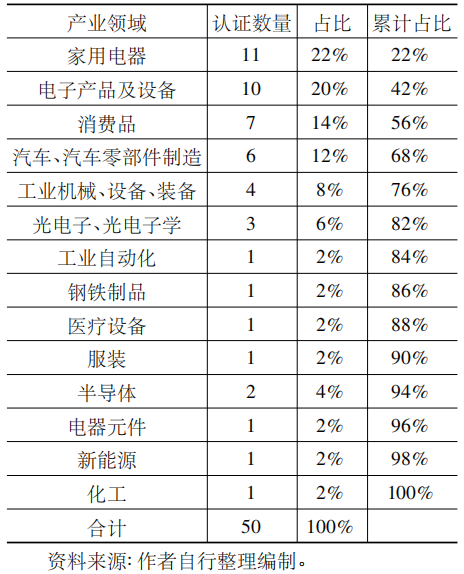 從企業屬性看,46家大陸企業的平均注冊資金為37億人民幣,基本為所在行業的大型頭部企業;46家大陸企業平均成立年份為16.5年,其中2001年中國“入世”前成立的企業15家,占比26.1%,1988年成立的中信戴卡股份有限公司(生產鋁合金車輪)和廣州寶潔有限公司(生產日化產品)經營時間最久。這說明我國傳統制造業轉型升級的空間巨大,對此應該有堅定的信心。
