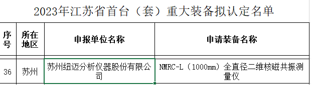 近日,江蘇省財政廳、科技廳公示了2023年省科技成果轉化專項資金項目擬立項情況,全省85項,蘇州市23項,紐邁高端深井油氣勘探核磁共振巖心分析儀研發及產業化項目成功入圍。