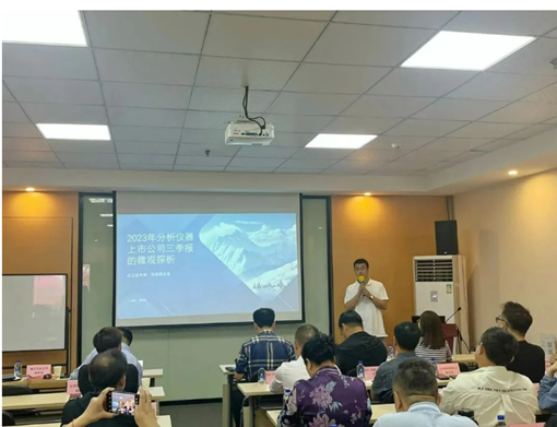 隨后,代理商分會副理事長林欣田作了題為“2023年分析儀器上市公司三季報的微觀探析的分享。他從銷售額、管理與經營和供應鏈三個方面對分析儀器產業鏈相關的部分上市公司進行了深入分析,通過第三季度財報數據來探究中國及國際分析儀器行業市場的發展情況及未來前景。