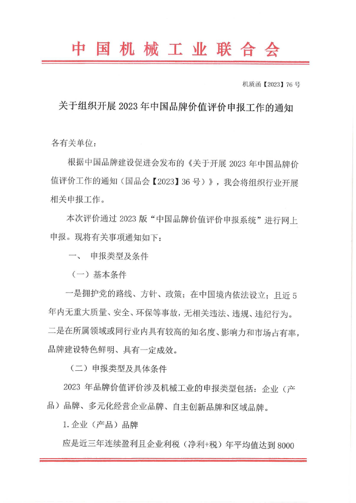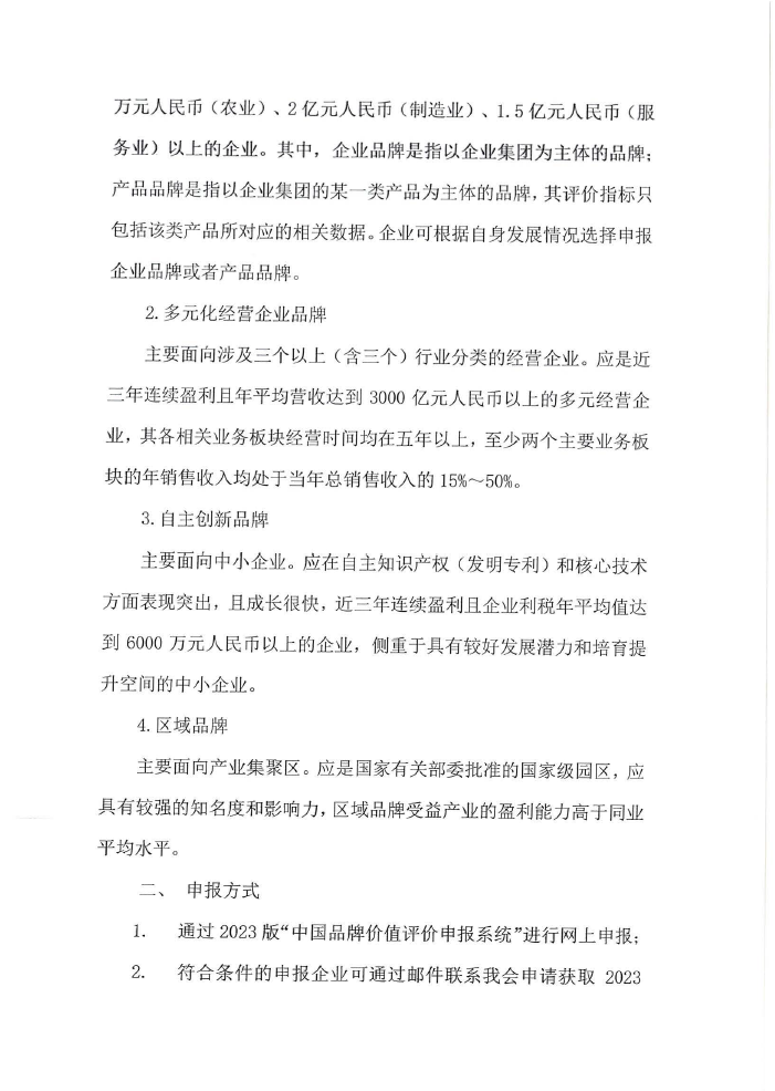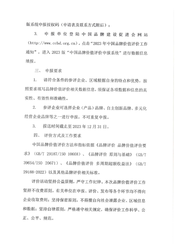 關于組織開展2023年中國品牌價值評價申報工作的通