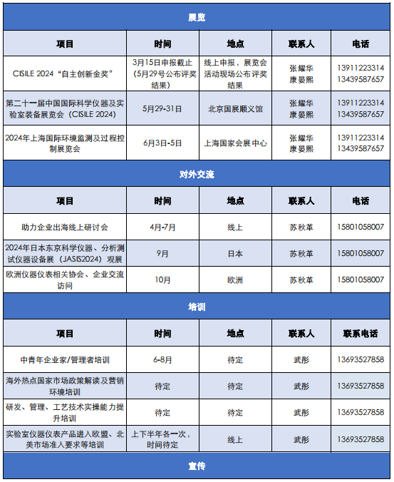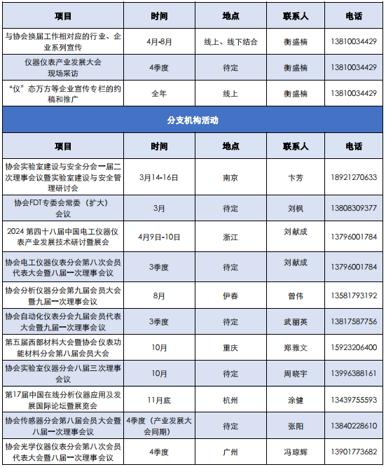 為發(fā)揮中國儀器儀表行業(yè)協(xié)會支撐政府、服務(wù)行業(yè)的橋梁作用,促進(jìn)行業(yè)間交流與合作,引導(dǎo)產(chǎn)業(yè)健康發(fā)展,推進(jìn)各項工作有序開展,更好地為協(xié)會會員企業(yè)服務(wù),特將中國儀器儀表行業(yè)協(xié)會2024年主要工作計劃整理如下,供大家了解和參與。