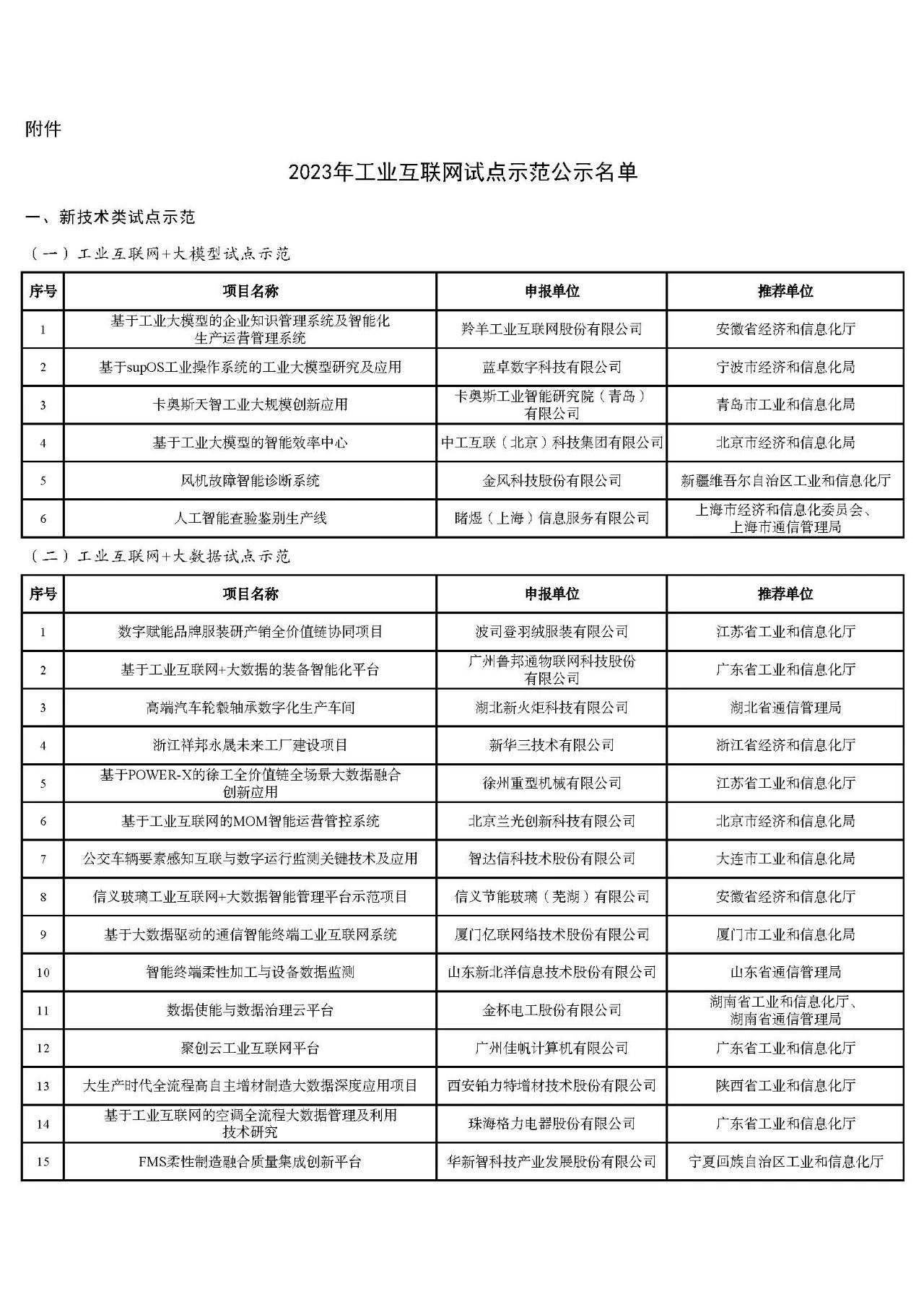 附件:2023年工業(yè)互聯(lián)網(wǎng)試點(diǎn)示范公示名單