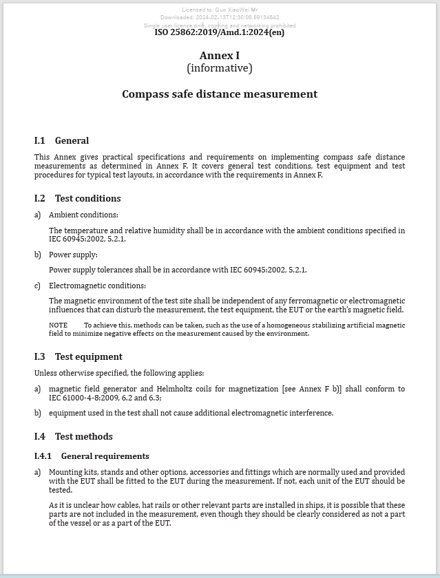 近日,ISO(國(guó)際標(biāo)準(zhǔn)化組織)正式發(fā)布了由上海工業(yè)自動(dòng)化儀表研究院有限公司(以下稱(chēng)自?xún)x院)作為技術(shù)主導(dǎo)制定的國(guó)際標(biāo)準(zhǔn)——ISO 25862:2019/Amd 1:2024《羅經(jīng)安全距離測(cè)量方法》。該標(biāo)準(zhǔn)是對(duì)ISO 25862:2019《船舶和海上技術(shù) 船用磁羅經(jīng)、羅經(jīng)柜和方位讀數(shù)儀》內(nèi)容的完善補(bǔ)充,為船用磁羅經(jīng)安全距離測(cè)量提供更詳盡的方法和指導(dǎo),以消除不同檢測(cè)機(jī)構(gòu)在測(cè)試過(guò)程中因試驗(yàn)設(shè)備、試驗(yàn)配置、流程及操作的差異引起的不確定因素,提高測(cè)試結(jié)果的可重復(fù)性和科學(xué)性。