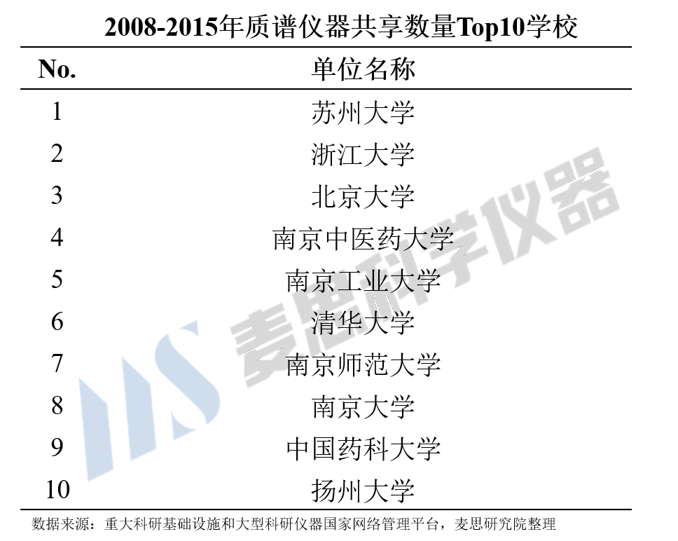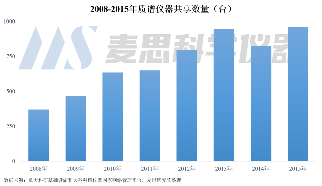 根據(jù)麥思研究院統(tǒng)計(jì),2008-2015年共享平臺(tái)上約有5600臺(tái)質(zhì)譜儀器開始啟用,其中約2000臺(tái)來(lái)自各類學(xué)校。