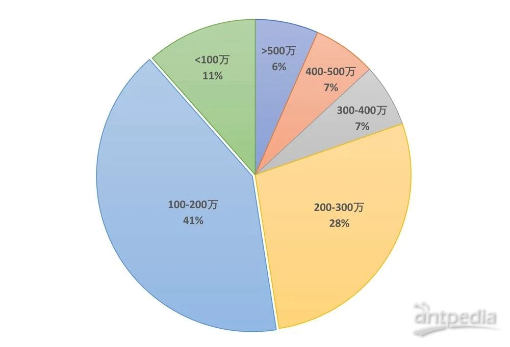 分子互作儀作為重要的生命科學(xué)儀器,其價格相對較高,基本設(shè)在百萬級。從本次統(tǒng)計(jì)來看,超過500萬中標(biāo)金額的儀器僅一個型號,即思拓凡的Biacore 8K,200萬到500萬之間共計(jì)25臺,8種型號,包括思拓凡的Biacore 1S+、Biacore 1K;諾坦普的 Dianthus、Prometheus Panta、Monolith;賽多利斯的OCTET RH16、Octet R8、Octet R4,200萬以下共32臺,共計(jì)12種型號。其中100萬到200萬是眾多單位的預(yù)算區(qū)間,共計(jì)25次中標(biāo)。