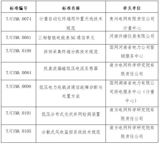 《計量自動化終端用外置天線技術規范》等7項團體標準