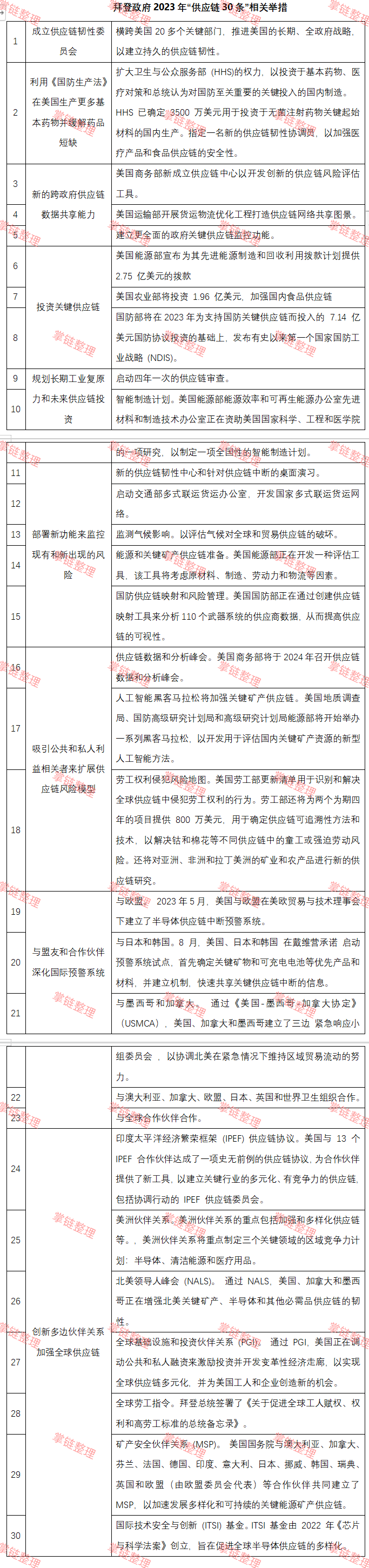 30條措施中:第1條為設立供應鏈韌性委員會作為戰略制定者和監管者;