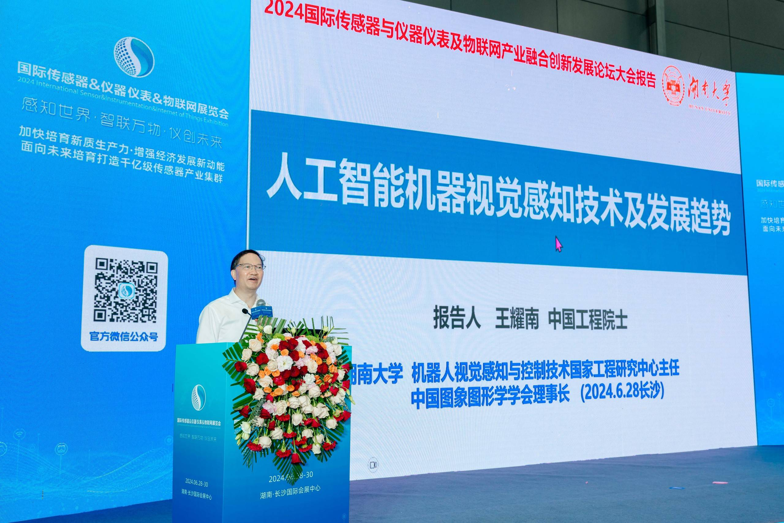 中國工程院院士、機(jī)器人視覺感知與控制技術(shù)國家工程實(shí)驗(yàn)室主任、湖南大學(xué)教授王耀南,中國計(jì)量協(xié)會理事長吳方迪,中國儀器儀表行業(yè)協(xié)會秘書長李躍光,湖南省歐美同學(xué)會會長、湖南省政協(xié)原副主席、九三學(xué)社湖南省委會原主委張大方,九三學(xué)社湖南省委員會主委、長沙學(xué)院院長陳赤平,湖南省工業(yè)和信息化廳二級巡視員李紅亮,湖南省科學(xué)技術(shù)協(xié)會二級巡視員喻澤紅,工信部賽迪研究院物聯(lián)網(wǎng)中心主任韓允,九三學(xué)社湖南省委副主委李少陽,湖南省工業(yè)和信息化行業(yè)事務(wù)中心主任鄧光亮,中國電子科技集團(tuán)第48研究所副所長薛勇,湖南省工業(yè)和信息化廳人工智能與數(shù)字產(chǎn)業(yè)處副處長許文琳,湖南省儀器儀表學(xué)會理事長,湖南科技大學(xué)副校長趙前程,湖南省傳感器產(chǎn)業(yè)促進(jìn)會會長 王定曉會長,湖南省儀器儀表行業(yè)協(xié)會會長文勝等嘉賓及企業(yè)家、參展商等近300人出席了大會。