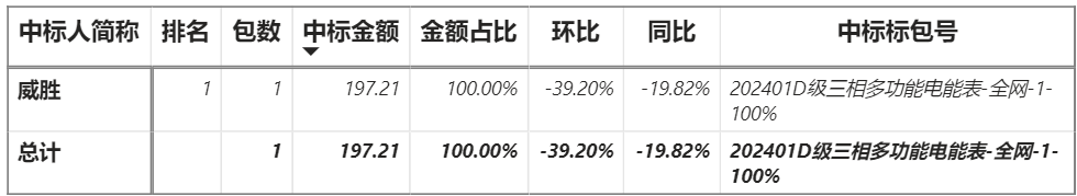 總金額197.21萬元,1家企業實現中標,威勝中標197.21萬元;