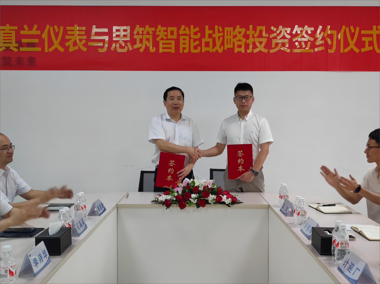 真蘭儀表董事長兼總裁李詩華、執(zhí)行總裁任海軍、副總裁兼董事會秘書王文軍、財務中心兼投資部總經理黃君巍,思筑智能董事長兼總經理計迎廠、副董事長許修峰、創(chuàng)始人及董事朱趙君等領導出席簽約儀式。