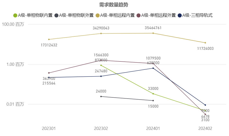 其中,單相表部分1174萬只,需求環比下降約69%;