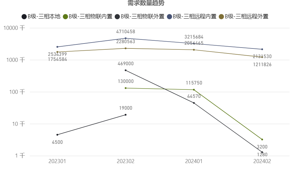 B級三相部分334.78萬只,需求環比下降約38%;
