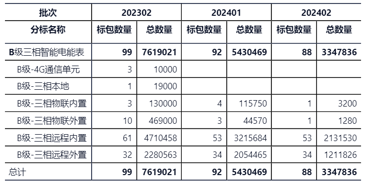 B級三相分標總數量334.78萬只、88個標包。