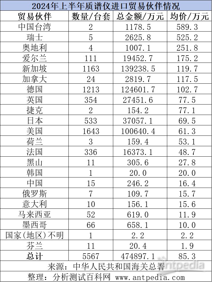 2024年上半年 質(zhì)譜儀進出口盤點