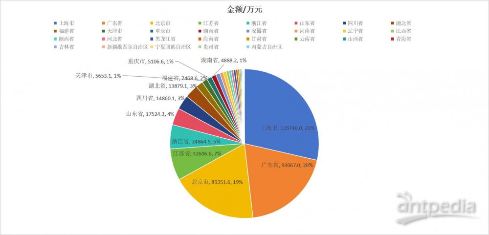 2024年上半年進口總金額達到47.5億元,其中,上海13.6億元,占比29%,廣東9.3億元,占比20%,北京8.9億元,占比19%,江蘇3.2億元,占比7%,浙江2.5億元,占比5%