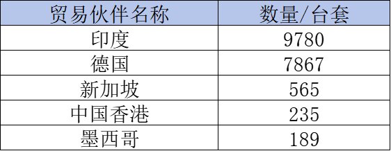 2024年上半年質(zhì)譜出口18994臺套,數(shù)量前五的有印度9780臺套,德國7867臺套,新加坡565臺套,遠銷中國香港235臺套,墨西哥189臺套。