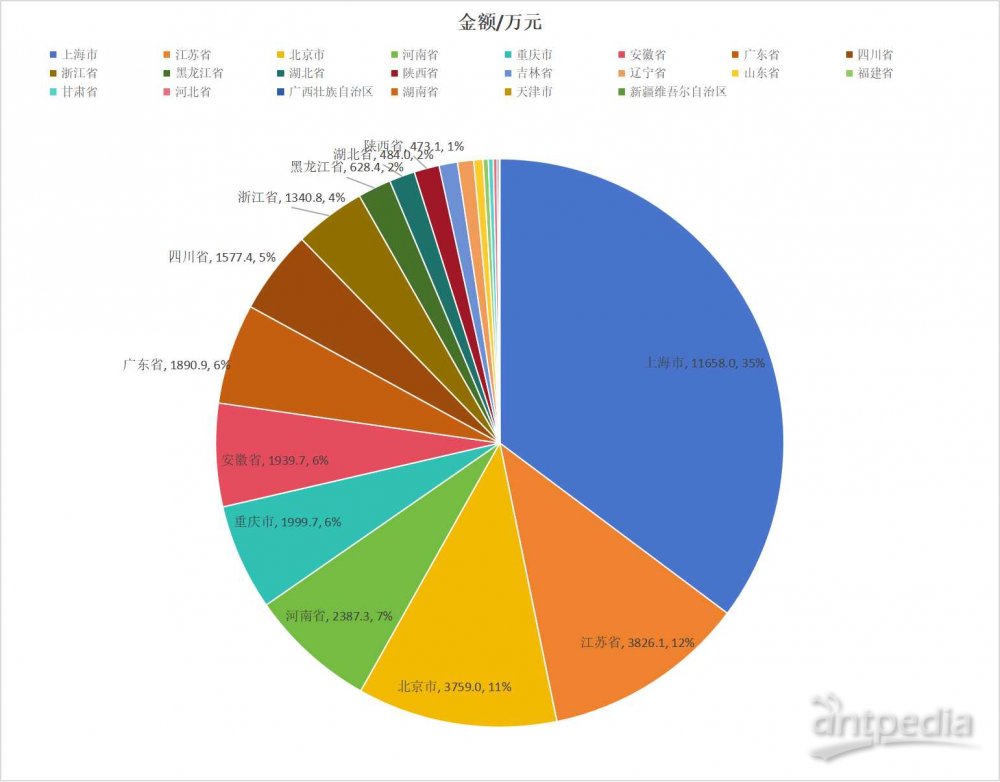 從2024年上半年質(zhì)譜出口金額來看,國內(nèi)TOP5的出口地區(qū)為上海市1.2億元,江蘇省3826.1萬元,北京市3759.0萬元,河南省2387.3萬元,重慶市1999.7萬元。