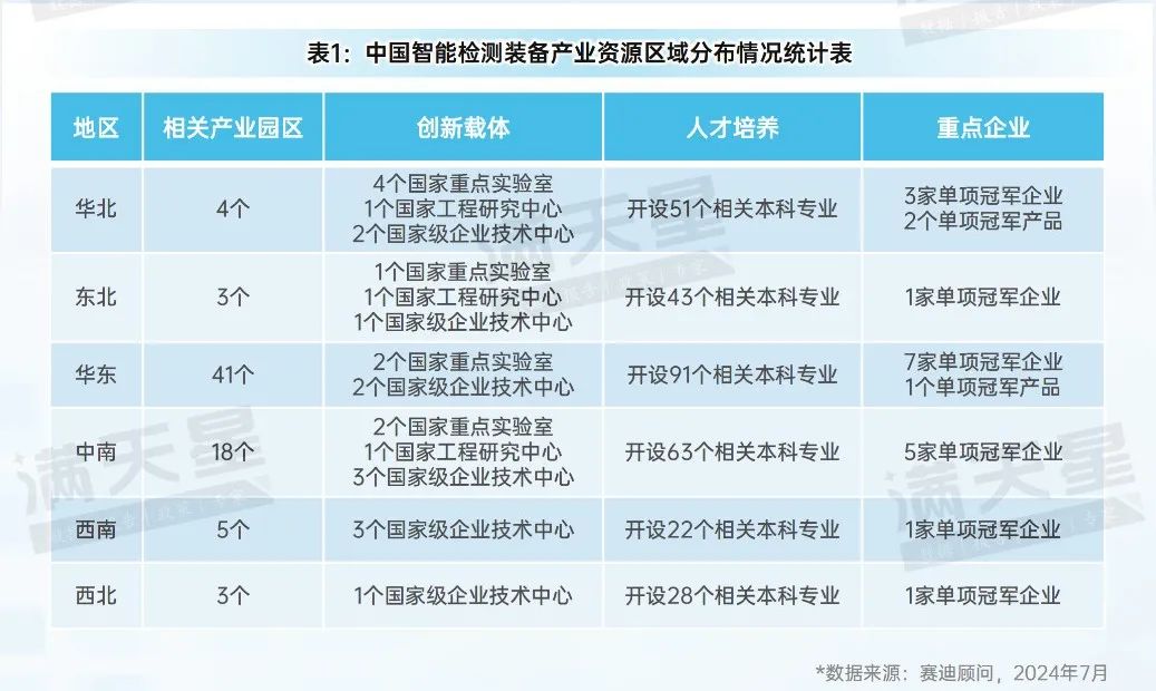 表1:中國智能檢測裝備產(chǎn)業(yè)資源區(qū)域分布情況統(tǒng)計表