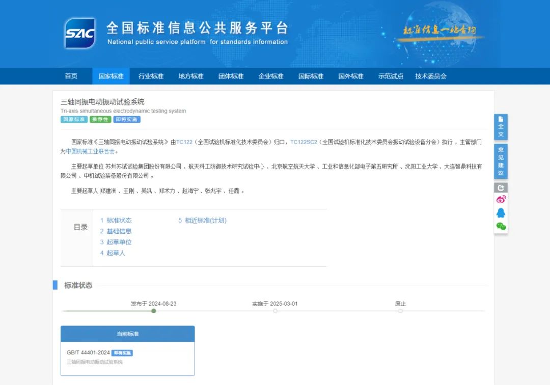 蘇試試驗作為工業(yè)產(chǎn)品環(huán)境適應(yīng)性與質(zhì)量可靠性試驗驗證及分析服務(wù)解決方案提供商,是相關(guān)國家標(biāo)準(zhǔn)、行業(yè)標(biāo)準(zhǔn)的主要起草者之一。在我國力學(xué)、氣候、綜合等試驗設(shè)備及試驗方法領(lǐng)域,集團(tuán)已累計主持或參與制定國家標(biāo)準(zhǔn)53項,行業(yè)標(biāo)準(zhǔn)15項。