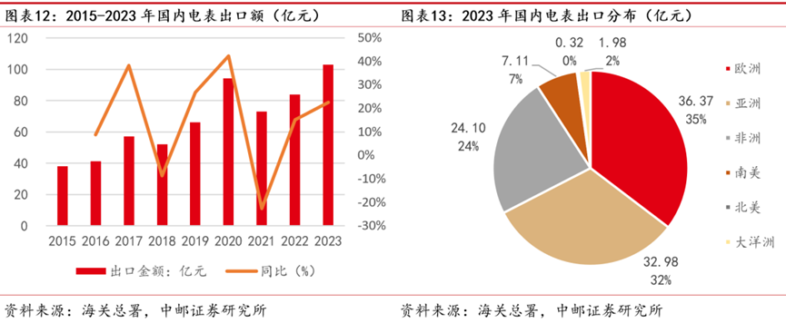 2023年電表出口金額24億元(+60%),2015-2023年CAGR 11%。
